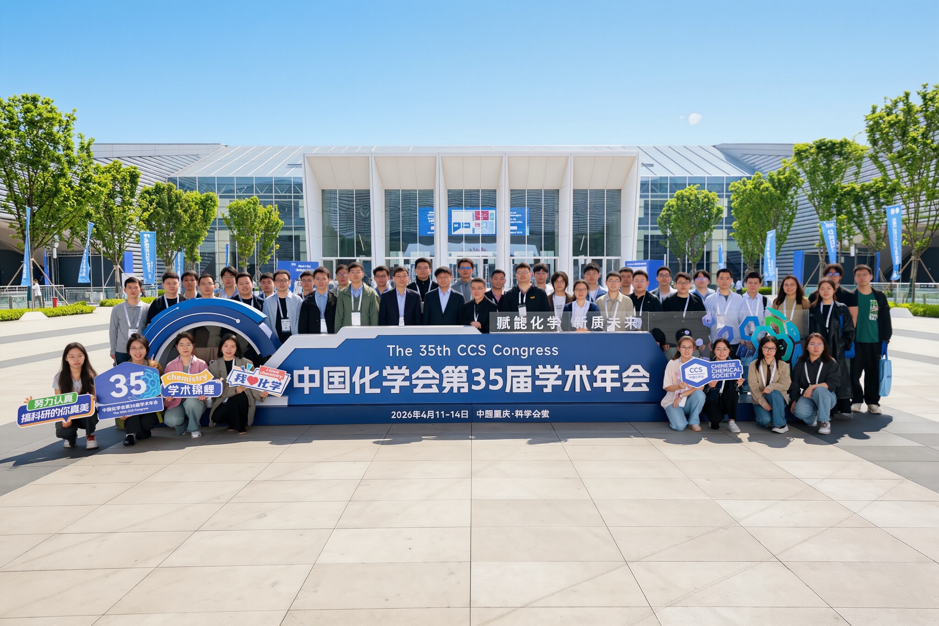 2026年4月11日至14日,中国化学会第35届学术年会在重庆科学会堂举行。课题组吴光鹭老师带领组内11名学生参会。本届年会以“赋能化学 新质未来”为主题,共设置72个学术分会,汇聚来自各领域的杰出化学工作者开展专题报告,并与参会师生进行深入学术交流。